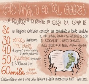 L’emergenza Covid-19 ha letteralmente fermato le attività delle case editrici librarie calabresi; che si sono ritrovate da sole a fronteggiare questo grave momento. La voce EDITORE non è neppure contemplata per i ristori, e lo STOP di questi mesi sta già rappresentando un colpo mortale per le case editrici della Calabria.