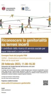 Cento assistenti sociali coinvolti negli interventi con le famiglie, tre anni di lavoro, un obiettivo: costruire insieme strumenti nuovi per affrontare le difficoltà che nascono nelle famiglie. Sono i numeri del progetto di ricerca CoPInG (Constructions of parenting on insecure grounds. What role for social work), coordinato dall’Università di Trento (dipartimento di Psicologia e Scienze cognitive) e condotto insieme alla Libera Università di Bolzano, all’Università di Trieste e all’Università della Calabria, che ha ottenuto un finanziamento ministeriale Prin, come ricerca di rilevante interesse nazionale. Dopo un intenso lavoro di analisi del contesto, del quadro politico e culturale, di ascolto e riflessione, il gruppo di ricerca è ora pronto per presentare i risultati del progetto. Le linee guida per costruire metodologie e interventi adatti a prevenire e gestire l’incertezza delle famiglie saranno anticipati il prossimo 28 febbraio a Roma nel corso di un convegno che si terrà al Cnel. Alla presentazione interverranno anche rappresentanti del Consiglio nazionale dell’Ordine degli assistenti che sostiene il progetto.