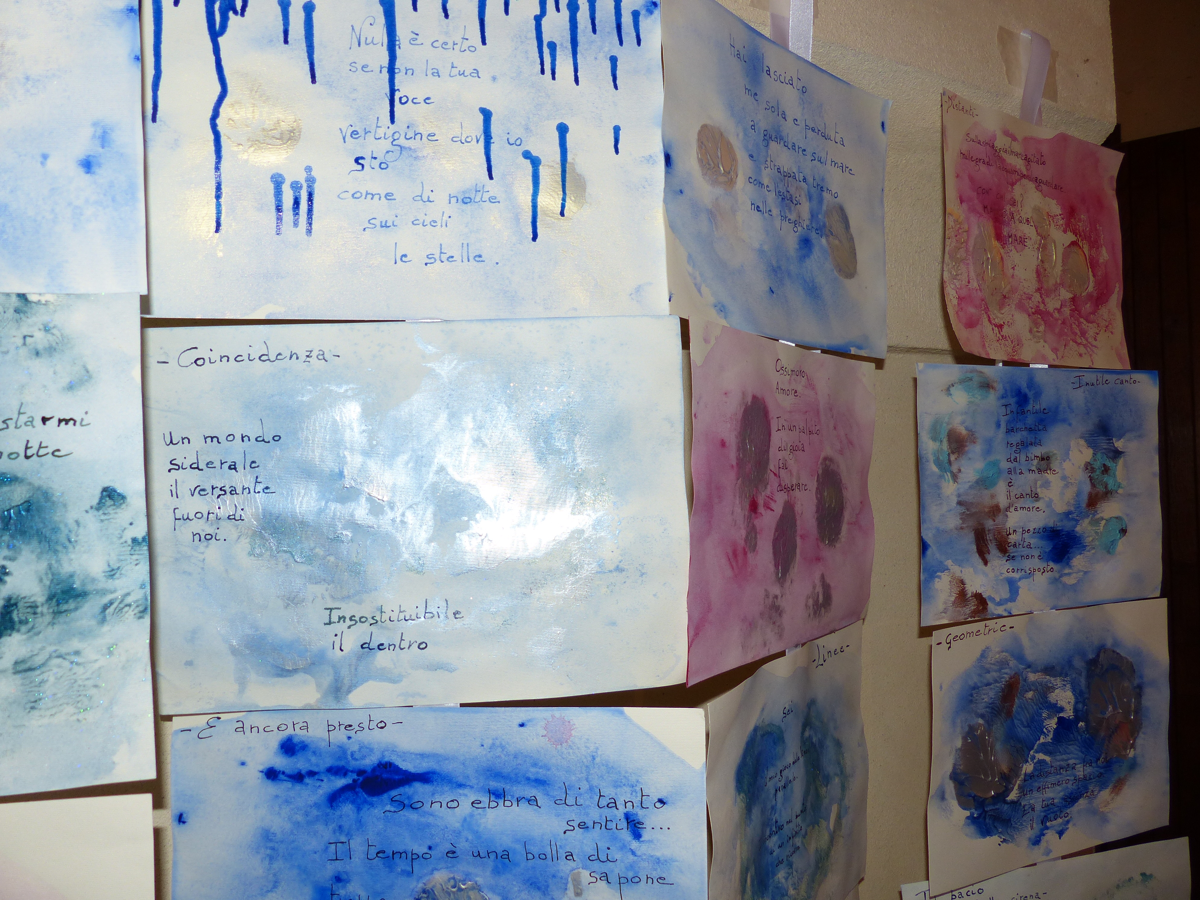 Nel pomeriggio di ieri, dunque, in una sala scolpita nella pietra, che profumava di tempo antico e di arte sempre fresca di giornata, si sono alternati alla letture delle loro opere, i poeti Pino Corbo, Lorenzo Curti, Mario De Rosa, Lucia Longo. Quest’ultima ha portato all’incontro le sue opere, scritte su carta da lei realizzata e dipinte a mano, che hanno ancor più abbellito un luogo che ha saputo essere madido di emozione.