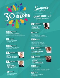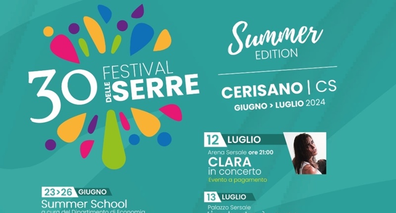 Il Comune di Cerisano è entusiasta di presentare gli appuntamenti della Summer Edition del Festival delle Serre. Questa edizione estiva del festival, anteprima del Festival delle Serre previsto a settembre (quest’anno festeggia 30 anni) promette di essere un evento culturale imperdibile.