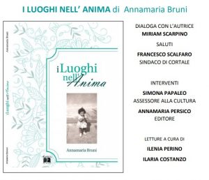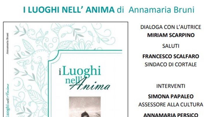 Sarà presentato lunedì 19 agosto 2019 alle ore 21:30 nei Giardini Renilin Etichetta Discografica a Borgo San Nicola – Cortale Basso, il libro “I Luoghi nell’Anima” di Annamaria Bruni, laureata in Psicologia Clinica e docente di psicologia, dirigente psicologa dell’Asp di Catanzaro, e che attualmente ricopre il ruolo di responsabile Ufficio relazioni con il pubblico.