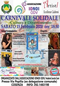 Il Giorno 15 Febbraio 2020 si appresta ad entrare nel vivo la prima edizione de” Carnevale Solidale”-Cultura e Divertimento- Organizzato dall’affermata Associazione ‘IONOI ODV’ a Cosenza.
