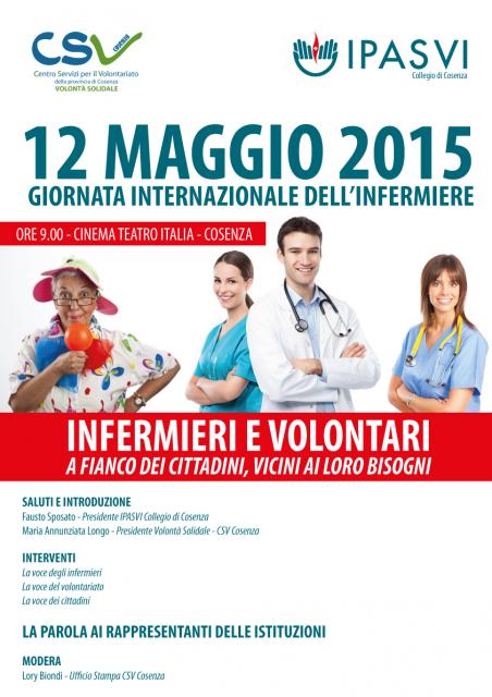 Si terrà domani 12 maggio alle ore 9, presso il cinema Italia di Cosenza, il convegno “Infermieri e volontari: a fianco dei cittadini, vicino ai loro bisogni”, organizzato dal collegio IPASVI e il Centro Servizi per il Volontariato della Provincia di Cosenza
