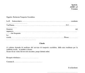 I genitori dei bambini dovranno compilare un apposito modellino, in allegato, che, dovrà essere spedito all’indirizzo di posta elettronica: servizi@aziendaservizimobilitacosenza.it ; aziendatrasporticosenza@tin.it .