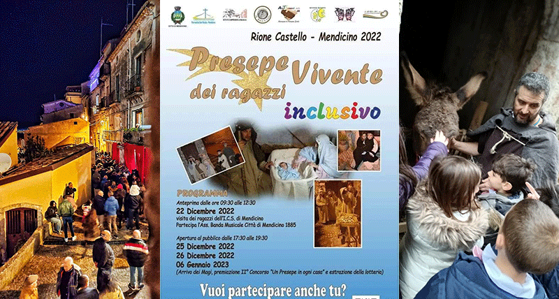 L’ultima rappresentazione del Presepe Vivente avrà luogo il 6 gennaio dalle ore 17:30 alle 19:30 nel caratteristico Rione Castello di Mendicino, con ingresso gratuito.