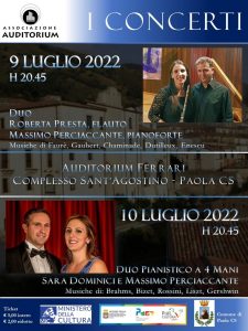 9 e 10 luglio 2022, h 20.45: Due concerti all’Auditorium Ferrari del complesso Sant’Agostino a Paola