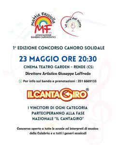 L’evento si terrà presso il Cinema Teatro Garden di Rende, il 23 Maggio 2025, offrendo a giovani e adulti un’opportunità unica per esprimere il proprio talento e contribuire a una nobile causa.