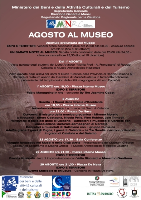 Agosto al Museo, è una straordinaria occasione per valorizzare i tanti beni culturali posseduti dal nostro paese e si terrà presso il Museo Archeologico di Reggio Calabria dal 1 al 29 agosto