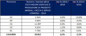 Si tratta di una legge che può aiutare concretamente le imprese calabresi del settore agricolo che in anni di difficoltà sono state costrette a dover chiudere. Quali sono le aree geografiche più critiche? Tra le province della regione, nel 2019, rispetto al 2010, il calo maggiore è stato registrato a Vibo Valentia (-10,8%; 2.644 imprese attive). Seguono Crotone (-4,4%; 4.654 imprese), Cosenza (-3,6%; 11.397 imprese), Catanzaro (-0,9%; 4.324 imprese), Reggio Calabria (-2,1%; 7.793 imprese). Cosenza e Reggio Calabria sono le città con il numero più alto di imprese del settore sul territorio.