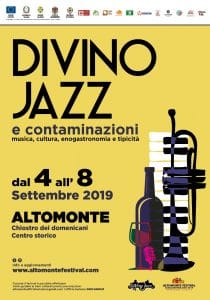 Arriva il mese di settembre e con lui un appuntamento immancabile del Festival Euromediterraneo di Altomonte: “Divino Jazz e contaminazioni”. Nata nel 2004, la rassegna che unisce musica, cultura, arti figurative, enogastronomia e tipicità è quella che fra tutti gli eventi della trentaduesima edizione del festival incarna il tema della “Generazione culturale” che caratterizza gli appuntamenti del 2019 insieme all’omaggio allo scrittore Andrea Camilleri.