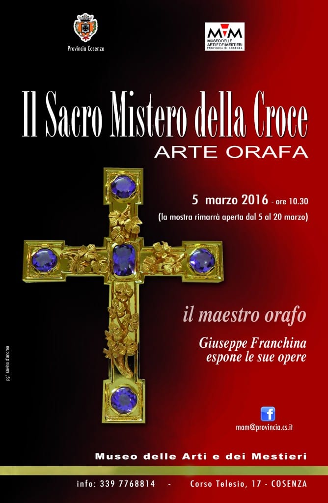 Sarà inaugurata sabato 5 marzo, alle ore 10.30 al Mam – Museo delle arti e dei mestieri – della Provincia di Cosenza, la mostra “Il Sacro mistero della Croce” del maestro orafo Giuseppe Franchina.