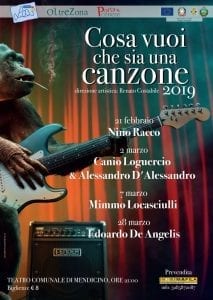 Arriva al Teatro di Mendicino una nuova edizione della Rassegna “Cosa vuoi che sia una Canzone” le cui prime edizioni si erano svolte al Teatro Gambaro di San Fili nell’ambito della Residenza Teatri Meridiani con la presenza di importanti ospiti protagonisti della “Storia della Canzone” in Italia, Massimo Bubola, Mimmo Cavallo, Patrizio Trampetti, Claudio Lolli, Dario Brunori, Emanuele Belloni, Peppe Voltarelli.