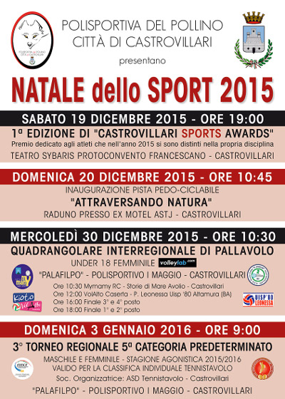 Partono le attività della Polisportiva del Pollino “Città di Castrovillari”, previste nell’ambito della manifestazione Natale dello Sport 2015, patrocinata dal Comune di Castrovillari.