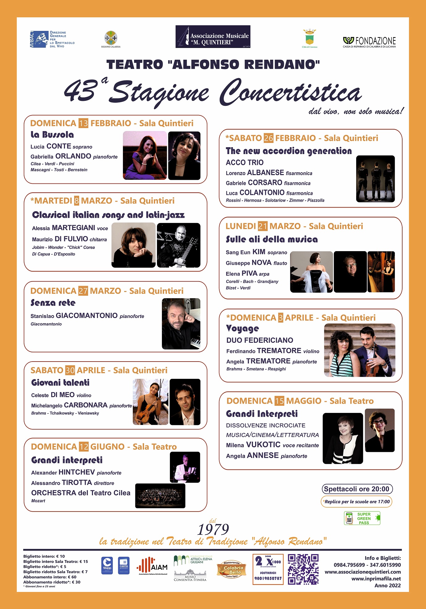 Sono questi gli ingredienti della nuova stagione concertistica dell’Associazione Musicale “Maurizio Quintieri”, la numero 43, che il sodalizio musicale di cui è Presidente Giuseppe Maiorca, con la direzione artistica di Lorenzo Parisi, realizzerà nel 2022 al Teatro “Rendano” con il patrocinio del Comune di Cosenza e con il sostegno del MIBACT e della Regione Calabria.