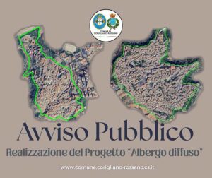Sull’Albo pretorio dell’Ente è stato pubblicato l’Avviso pubblico per la “realizzazione del progetto di Albergo diffuso”, che trova applicazione nell’ambito della Strategia Urbana dell’Area Urbana di Corigliano-Rossano e sostiene la realizzazione di investimenti materiali ed immateriali capaci di contribuire agli obiettivi individuati dalla Strategia, ed intende promuovere lo sviluppo e il miglioramento della ricettività extra-alberghiera.