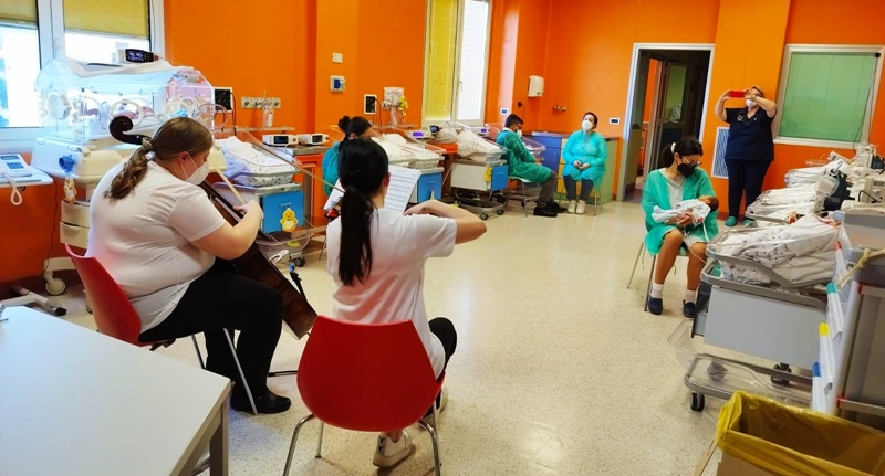 L’esecuzione di brani del repertorio classico e le improvvisazioni di composizioni musicali con voce e strumenti hanno l’obiettivo di ridurre gli elementi di disturbo e di stress dei neonati legati alle attività assistenziali medico-infermieristiche e a tutti gli stimoli dolorosi, luminosi e rumorosi presenti durante la loro degenza.