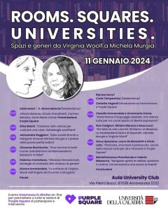 Il titolo della giornata che ospiterà gli interventi di Purple Square è: “Rooms, Square, Universities. Spazi e genere da Virginia Woolf a Michela Murgia”. Gli interventi da Purple Square previsti tratteranno quattro saggi fondamentale: “Ave Mary”, “Stai Zitta”, “God Save the Queer” e “Morgana”, tutti libri scritti da Michela Murgia.
