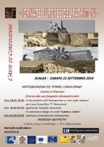L’Antiquarium di Scalea, in collaborazione con il Liceo Scientifico “Pietro Metastasio”, l’associazione Arca, il Consorzio ECOtur ed il patrocinio del Comune di Scalea, nell’ambito delle Giornate Europee del Patrimonio, promuove il prossimo 22 settembre un evento volto alla conoscenza e alla condivisione del beni materiali ed immateriali del proprio territorio.