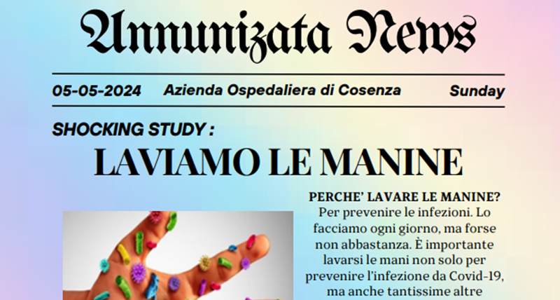 Nella Giornata Mondiale per l’igiene delle mani, l’Azienda ospedaliera ha scelto, strategicamente, di rivolgere l’attenzione ai bambini perché attraverso loro si raggiungo anche gli adulti.