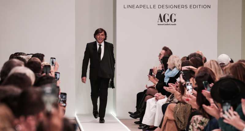 La sfilata a Milano è stata organizzata in collaborazione con Lineapelle- Unic Concerie Italiane, ed è una personale e sentita dedica del celebre couturier ad una delle figure più affascinanti del Novecento mondiale: Frida Kahlo. L’artista messicana è universalmente nota per aver trovato nella pittura un’ancora di salvezza nei confronti della sua esistenza. La nota pittrice si è saputa imporre esternando nelle sue opere il proprio vissuto provato da sofferenze, ma comunque valorizzato da un’anima anticonformista, forte e ribelle. In passerella ventidue look, un tripudio di pellami lavorati con le tecniche dell’alta moda con top asimmetrici di camoscio, cavallino, nappe, iper ricamati. Tra i capi cult per la prossima stagione proposti da Grande ci sono le gonne lunghe in stile gipsy con frange di pelle e di cristalli, rouches di organza, balze di pizzo, e anche un particolare giubbotto di pelle con l’immagine della Kahlo. Ad applaudire il designer, tra gli ospiti vip, le attrici Madalina Diana Ghenea, Debora Caprioglio, l’attore Lorenzo Spolverato e il cantante Virginio.