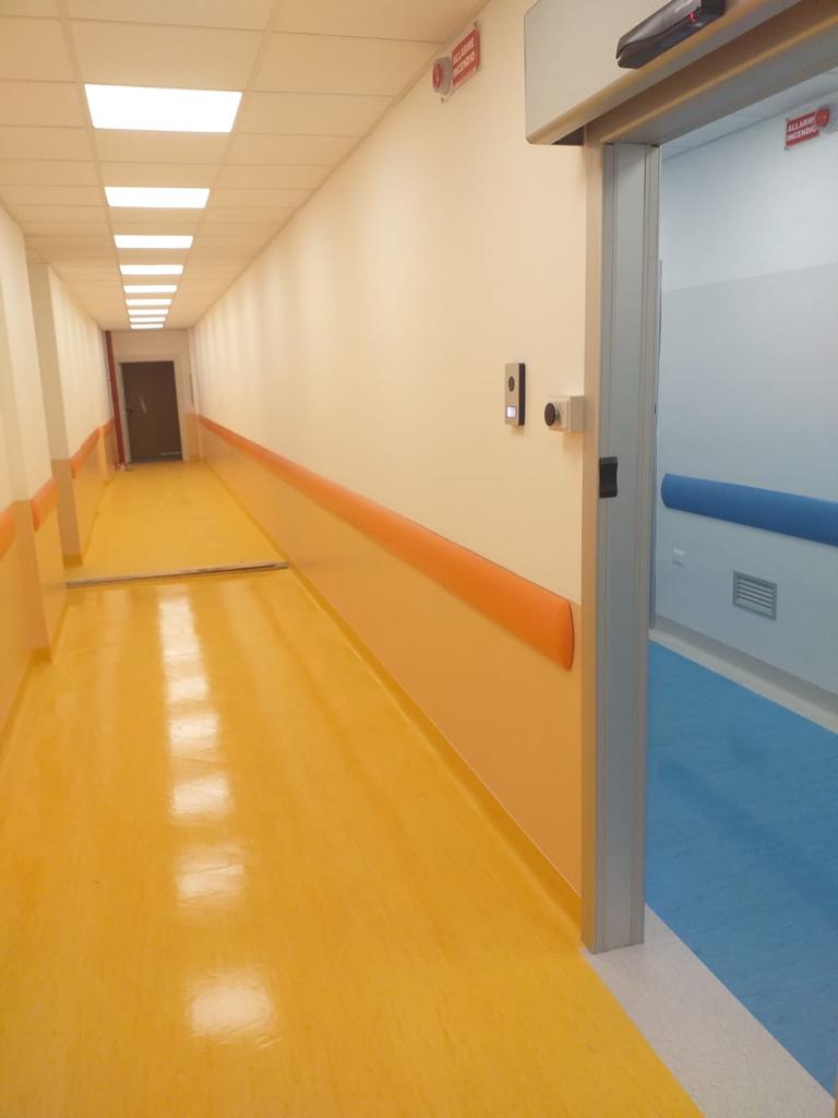 Ampliato e completamente ristrutturato il reparto di degenza: tre camere, per un totale di cinque posti letto, dotate di servizi igienici dedicati, con convogliamento dei reflui radioattivi in impianto di smaltimento dedicato.