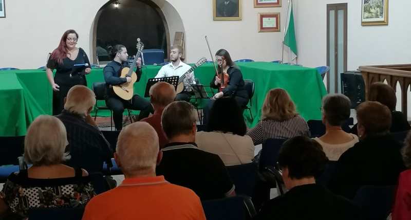 Il 21 settembre, nella cornice del Chiostro di San Bernardino da Siena a Morano Calabro, è stata la volta del Mefitis Quartet – Lucia Valeria Veltro (contralto), Vita Cisullo (violino), Gaetano Agoglia e Francesco Latorraca (chitarre) – con il programma “Salotto storico partenopeo”. Un viaggio musicale che ha intrecciato lirica, tradizione napoletana e Novecento, passando da A Chloris di Reynaldo Hahn e dall’Habanera di Bizet fino a Santa LuciaReginellaA’ vucchellaNon ti scordar di meFuniculì FuniculàO surdato ‘nnammurato, per poi approdare al tango di Astor Piazzolla e alla drammaticità di Manuel de Falla. Un’esecuzione compatta e suggestiva, che ha trasformato ogni brano in un quadro sonoro di grande intensità emotiva.