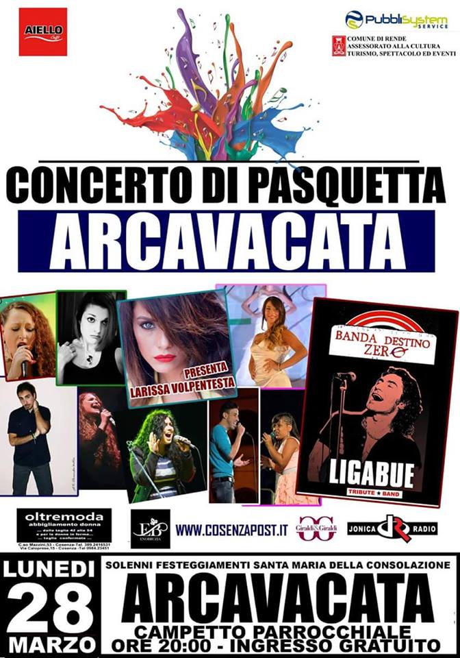 Gli abitanti di Arcavacata di Rende festeggiano anche quest’anno Santa Maria della Consolazione con celebrazioni religiose e civili. Lunedì dell’Angelo invece, si terrà il Concerto di Pasquetta, uno spettacolo musicale con tanti artisti sul palco