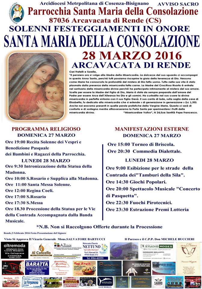 Come ogni anno, gli abitanti di Arcavacata, frazione di Rende, devoti a Santa Maria della Consolazione hanno organizzato diverse manifestazioni civili che ben si coniugano con gli appuntamenti religiosi.
