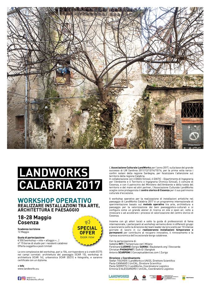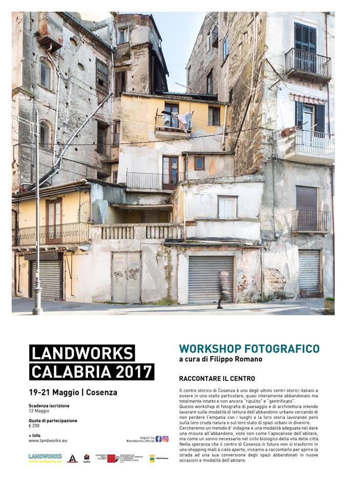 Dal 18 al 28 Maggio 2017 si terrà a Cosenza un importante workshop organizzato dall’associazione LandWorks, in collaborazione con il Comune di Cosenza e l’Università di Sassari e con il patrocinio di altri enti e realtà locali