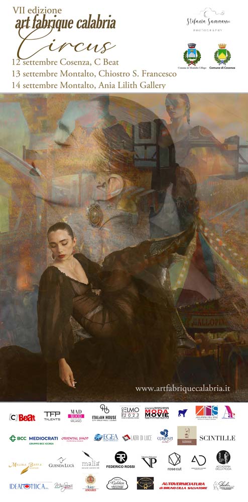 Il 13 settembre, la kermesse si sposterà al Chiostro di S. Francesco di Paola (Piazza E. Bianco Montalto Uffugo) per un affascinante defilé di moda, esposizioni fotografiche, premiazioni e degustazioni. L’evento offrirà al pubblico intensi momenti di spettacolo in cui la creatività scorrerà senza limiti e ogni immagine catturerà l’essenza di mondi fantastici. Attraverso l’obiettivo dei fotografi, la moda si trasformerà in una performance accattivante in cui tessuti e colori si fonderanno in un caleidoscopio di emozioni e storie. E mentre il sole calerà sugli splendidi scenari calabresi di Cosenza e Montalto Uffugo, Art Fabrique Calabria si alzerà come il tendone di un circo contemporaneo, pronto a stupire, affascinare e coinvolgere tutti coloro che varcheranno la soglia di questo magico evento.