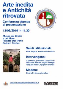 Sarà presentata alla stampa il prossimo tredici giugno, h 11,30, nella sede di Palazzo Del Trono a Cetraro, la mostra politematica “Arte inedita e Antichità ritrovata”.