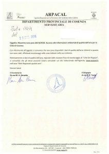 L’Arpacal invece sì, risponde alla nostra richiesta di accesso agli atti, certificando che il centro di Cosenza non è monitorato. L’unica stazione di rilevamento è tutt’ora quella situata sul confine nord, nei pressi della Città dei Ragazzi.