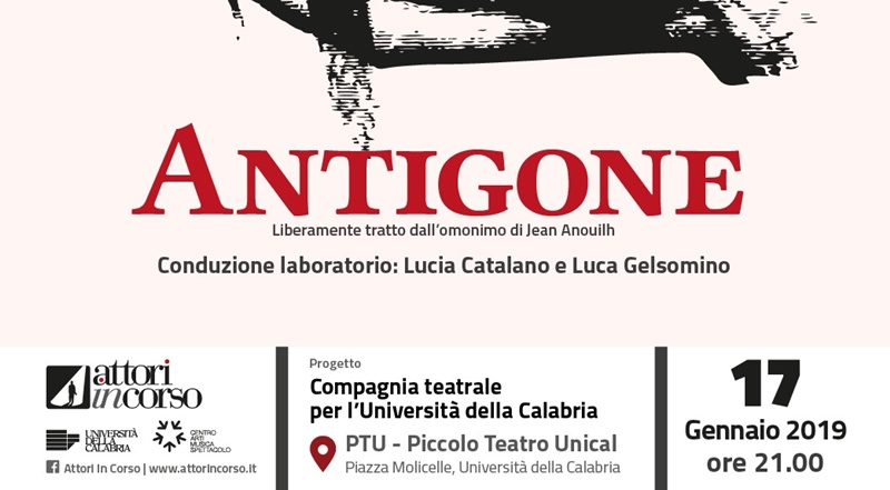 AttorInCorso porta in scena l’ambizioso progetto della Compagnia teatrale per l’Università della Calabria che debutterà giovedì 17 gennaio, alle ore 21, al Piccolo teatro dell’Unical con “Antigone”, liberamente tratto dal testo di Jean Anouilh frutto del laboratorio condotto dalla regista di AttorInCorso Lucia Catalano e Luca Gelsomino.