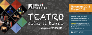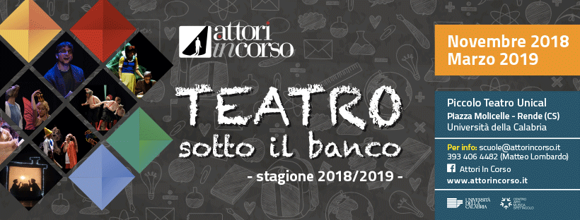 Si incomincia lunedì 5 novembre con “Diritti nelle fiabe” che andrà avanti sino a venerdì 9 e con replica serale mercoledì 7 alle ore 21. La rassegna prosegue lunedì 26 novembre (è prevista anche la replica serale alle 21), e martedì 27 con “La Guerra di Troia non si farà” mentre l’ultimo appuntamento di novembre sarà giovedì 29 e venerdì 30 con “Sogno di una notte di mezza estate”. “Teatro sotto il banco” ritornerà a marzo con altri tre spettacoli: da lunedì 4 a mercoledì 6 andrà in scena “I musicanti di Brema”; venerdì 8 e sabato 9 tocca a “Insalata di fiabe”; lunedì 25, martedì 26 e mercoledì 27 sarà la volta di “Romeo e Giulietta” mentre giovedì 28 e venerdì 29 si chiude con “Tratti d’ingano”. Tutti gli spettacoli si terranno al Piccolo teatro Unical dell’Università della Calabria e hanno la regia di Lucia Catalano.