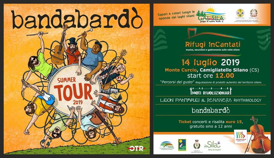Il nuovo tour della Bandabardò si preannuncia come una grande festa che scuoterà tutta la Sila a partire dalle 15. Alle ore 12 si inizierà con il live di due realtà altrettanto ritmiche: Leon Pantarei & Renanera e di Moti rivoluzionari. Dall’incontro tra Leon Pantarei, “guru” della Groove therapy e i Renarena, band lucana dal sound elettronico di matrice etnica, nasce Rhythmology, un nuovo progetto destinato a far ballare tutti al suono della World Dance.