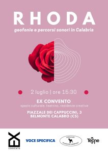 Si svolgerà domenica 2 luglio, Rhoda. Geofonie e percorsi sonori in Calabria, presso l’Ex Convento di Belmonte Calabro, dove musicisti e musiciste daranno vita a momenti di confronto e riflessioni trasversali. Gli studiosi prenderanno spunto dall’ascolto del canto Lu Garofalu d’Amuri, riportato con il titolo All’aria nova e pubblicato nella raccolta Folk Music from Italy, nel 1956.
