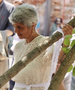 «Con “Cantare nei luoghi è fare radici” mi soffermo sul punto di contatto tra creazione artistica contemporanea e canto di tradizione orale del mondo rurale antico. Sul nutrire la vocalità nella fisicità del suono, nell’esperienza musicale e corporea e nel legame con le risonanze. In questa edizione ci siamo anche soffermate sulle gestualità e posture osservate in documentari sulla cultura contadina degli anni ’50-’70 –. Poiché l’acquisizione di una corporeità consapevole e dinamica è fondamentale per chi canta perché il corpo intero è lo strumento del/della cantante-performer» dice Anna Maria Civico, anche musicoterapista, ricercatrice indipendente, autrice, originaria di Catanzaro ma che vive tra Amelia (TR) e Venezia.