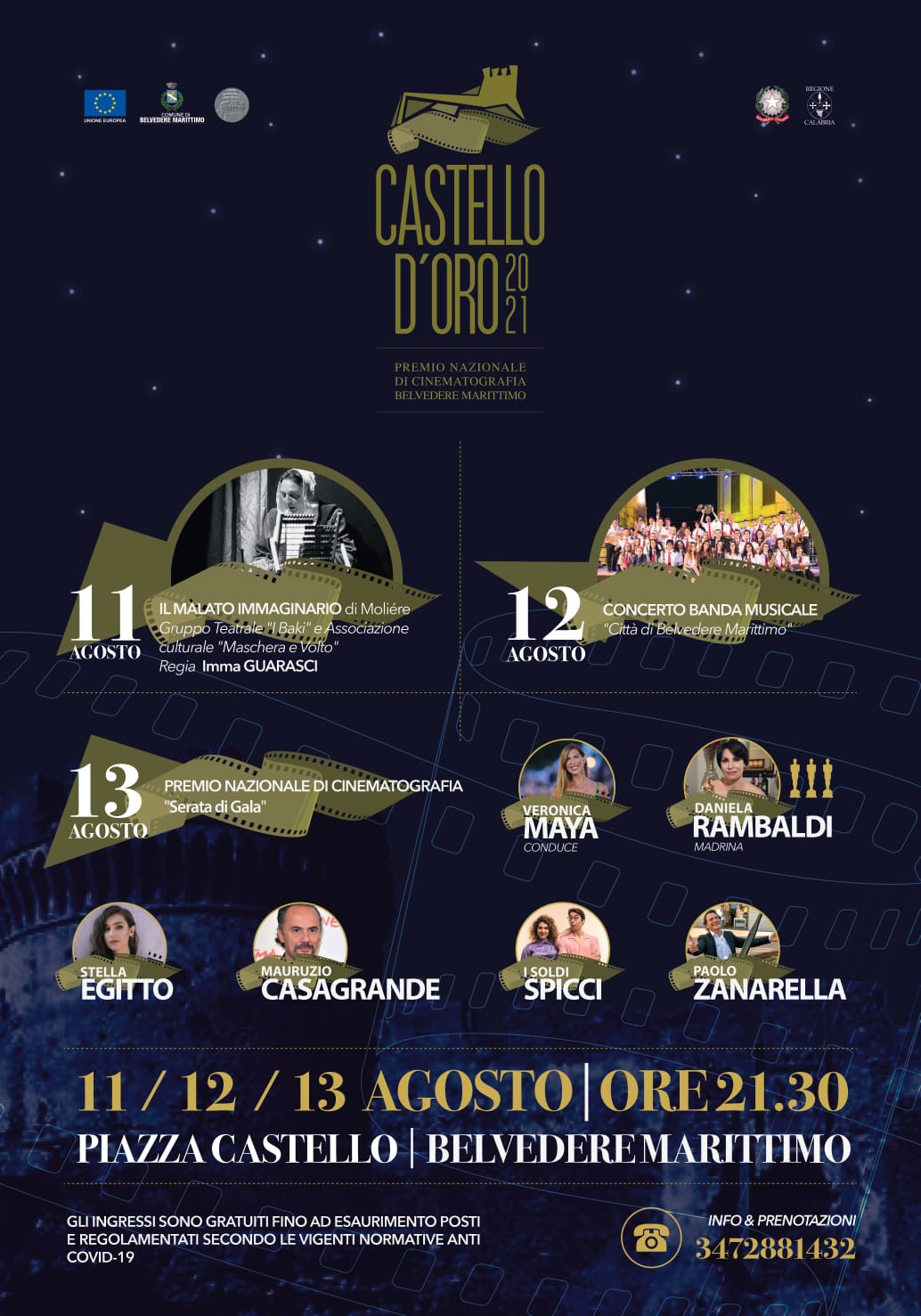 Castello D’Oro 2021. Tre giornate all’insegna della vera cultura e che vedranno avvicendarsi manifestazioni con personaggi dal calibro nazionale ed internazionale, adornati dalla suggestiva cornice del castello Angioino-Aragonese. La manifestazione avrà inizio nella serata dell’11 agosto, con la rappresentazione teatrale “Il Malato Immaginario” di Molière, a cura dell’Associazione “Maschera e Volto” e del gruppo teatrale “I Baki”, note di regia di Imma Guarasci.