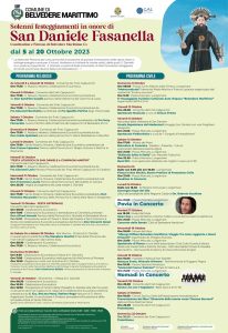 VENERDI’ 20 OTTOBRE (Alla Marina – Chiesa di S. Daniele) ore 8.30 Celebrazione Eucaristica. ore 10.30 Celebrazione Eucaristica. ore 16.00 Processione di rientro dalla Chiesetta S. Daniele alla Marina verso il Convento dei Frati Cappuccini. Seguirà la Celebrazione Eucaristica solenne presieduta da S. Ecc. Rev.ma Mons. Stefano Rega Vescovo di S. Marco Argentano-Scalea. A conclusione il Sindaco procederà all’accensione della lampada votiva al Santo Patrono. Questo anno offriranno l’olio i comuni di Maierà, Diamante e Mormanno. Particolarmente soddisfatto il sindaco, dott. Vincenzo Cascini, ha inteso dichiarare: “Queste celebrazioni accresceranno ulteriormente la profonda devozione che ci lega al Santo Patrono, e lo spirito di appartenenza al nostro territorio. A partire da quest’anno la nostra festa patronale riceverà un nuovo impulso per essere proiettata verso una progettualità sempre più vasta, assortita, innovativa e di spessore, e di questo non posso che ringraziare il vicesindaco Francesca Impieri, l’assessore con delega al Turismo, Marco Carrozzino, il comitato promotore, le associazioni, i commercianti e quanti stanno lavorando in sinergia per la buona riuscita dell’evento. Vi invitiamo a recarvi a Belvedere Marittimo”.