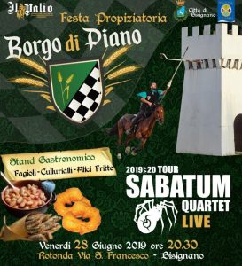 Una serata all’insegna della tradizione enogastronomica e della musica tradizionale con i Sabatum Quartet alla festa propiziatoria del rione Piano per Palio 2019 di Bisignano.