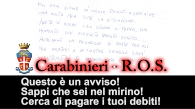 “Dobbiamo studiare il modo che lui capisca … ma senza fare nomi”, continuano gli estorsori. “Non è uno scherzo, la tua polizza annua è di 8.000 euro…”, e ancora: “Avete avuto molto tempo per accumulare … come si era stabilito … Avete di nuovo 30 giorni di tempo da quando ricevete questo scritto… altrimenti la promessa di morte per voi tre fratelli e le vostre famiglie sarà mantenuta”. Minacce pesanti per ottenere ingenti somme di denaro. “Per la vostra incolumità fisica non dovete assolutamente rivolgervi alle forze dell’ordine, altrimenti vi pentirete amaramente!!! Perché questa volta non sarà una semplice autovettura a doverne fare le spese! Ma una persona della vostra famiglia, a voi molto cara!”
