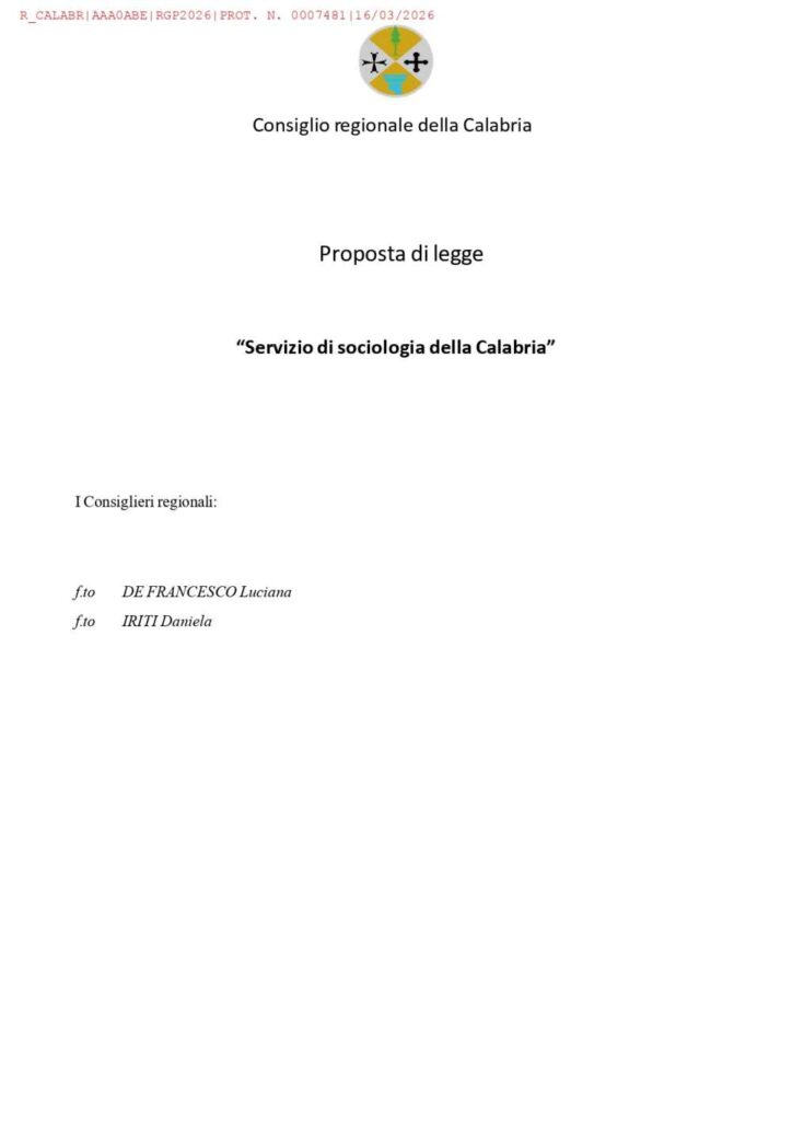 Dopo la protocollazione al Consiglio Regionale, la proposta di legge n. 59/2026 dal titolo “Servizio di sociologia della Calabria” ha ufficialmente iniziato il suo iter legislativo. Martedì 21 aprile scorso è stata discussa per la prima volta presso la Terza Commissione ‘Sanità e Attività Sociali e Formative’, presieduta dall’On. Angelo Brutto. L’iniziativa, promossa da Luciana De Francesco insieme alla collega Daniela Iriti, nasce dalla volontà di istituire un servizio strutturato presso le strutture del servizio sociosanitario e negli ambiti territoriali, per rispondere con competenze professionali specifiche ai mutati bisogni delle comunità calabresi. La proposta, che ha trovato ampia condivisione di tutti i componenti della Commissione, mira a garantire ai cittadini l’accesso a prestazioni sociologiche fondamentali per contrastare fenomeni come la dispersione scolastica, il bullismo, la ludopatia e la violenza di genere, fornendo al contempo supporto concreto alle famiglie in fase di separazione e alle persone con disabilità. Nel corso della medesima seduta, il confronto si è ampliato ai temi della natalità e della tutela della famiglia, portando all’approvazione di una risoluzione sottoscritta convintamente da Luciana De Francesco, che ha ringraziato il Presidente per aver promosso questo importante momento di crescita e responsabilità per il benessere della collettività.