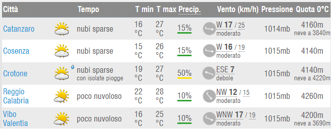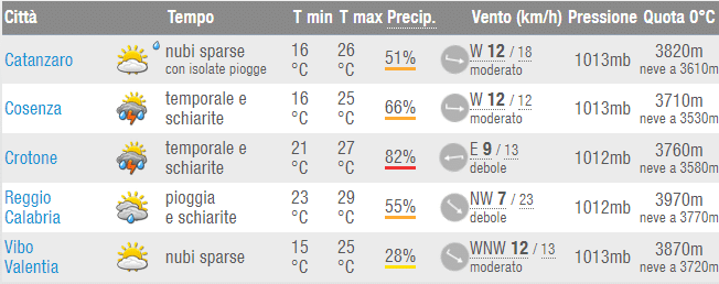 Di seguito, nello specifico città per città, le previsioni fornite direttamente dal sito nazionale per eccellenza: