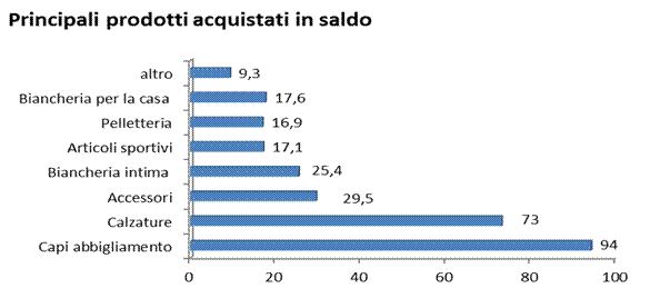 Per quel che riguarda la tipologia di prodotti acquistati, si confermano oggetto di interesse delle famiglie calabresi prevalentemente i capi di abbigliamento, le scarpe e gli accessori, mentre rivolgeranno minore attenzione verso articoli sportivi e prodotti di pelletteria.