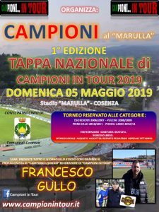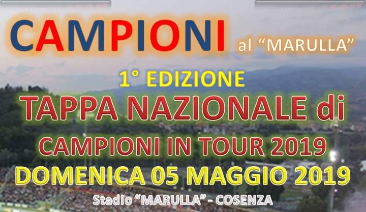 Il progetto nazionale calcistico giovanile “Campioni in Tour”, giunto quest’anno alla sua nona edizione, farà tappa, domenica 5 maggio, allo Stadio San Vito-Marulla di Cosenza.