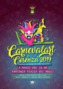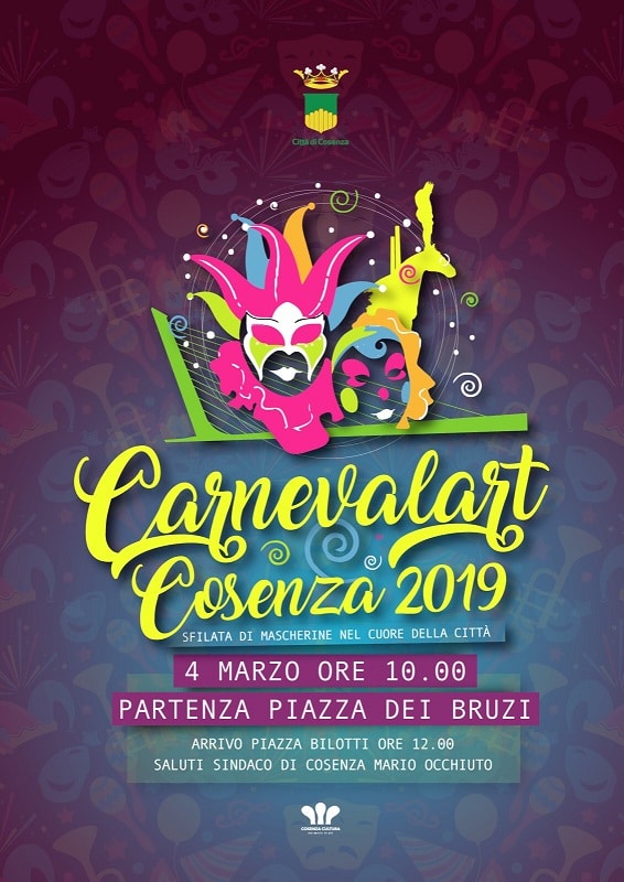 Torna per il terzo anno consecutivo “Carnevalart”, la gran parata promossa dal Comune di Cosenza, in collaborazione con le scuole della città, in occasione del Carnevale ed in programma lunedì 4 marzo con partenza da Piazza dei Bruzi, alle ore 10,00 ed arrivo in Piazza Bilotti, dove i circa mille bambini e ragazzi partecipanti saranno accolti dal Sindaco Mario Occhiuto, dal Vicesindaco ed Assessore alla cultura, on.Jole Santelli, e dall’Assessore al turismo e marketing territoriale Rosaria Succurro. Si rinnova, dunque, anche in questa nuova occasione, la proficua sinergia tra l’Amministrazione comunale e le scuole cittadine cui è stato assegnato un vero e proprio protagonismo attivo nell’organizzazione della parata. “Un ringraziamento sentito – ha sottolineato il Vicesindaco e Assessore alla Cultura, On.Jole Santelli – a quanti hanno collaborato per la buona riuscita di questa grande festa urbana ormai consolidata, in particolare al mondo della scuola, che vuole essere occasione di incontro per grandi e piccini”.