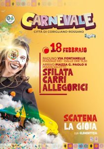 Un successo la formula per famiglie, il ritorno delle sfilate dei carri allegorici per questa edizione di Carnevale con la “nostra” Clementizia e con il supporto delle locali ProLoco e diverse associazioni del territorio. Nonostante i primi giorni di festa siano stati funestati dal maltempo – ricordiamo che domenica 18, si terrà la sfilata rinviata sabato 12 con raduno in via Fontanelle (piazzale MD), ore 15, e arrivo in Piazza Salotto – grande entusiasmo e partecipazione si sono registrati in tutti gli eventi collaterali messi a punto a Villa De Falco, Parco Fabiana Luzzi e in Piazzetta Portofino, con tanti bimbi vestiti in maschera, coriandoli, stelle filanti, spettacoli di magia, trampolieri, bolle di sapone, truccabimbi e tanti giochi. DI grande impatto le sfilate dei carri allegorici e la premiazione della maschera più bella con la partecipazione di diverse scuole del territorio. Sempre un successo e molto partecipata la sfilata in morte del carnevale nel centro storico di Corigliano con il carro allegorico di “Grigorij Carnivaleri” gruppo scena carnevale tradizionale, banda musicale, gruppi scolastici e folk, i tradizionali maccheroni con polpette, ciambelline fritte, intrattenimento musicale e spettacoli.