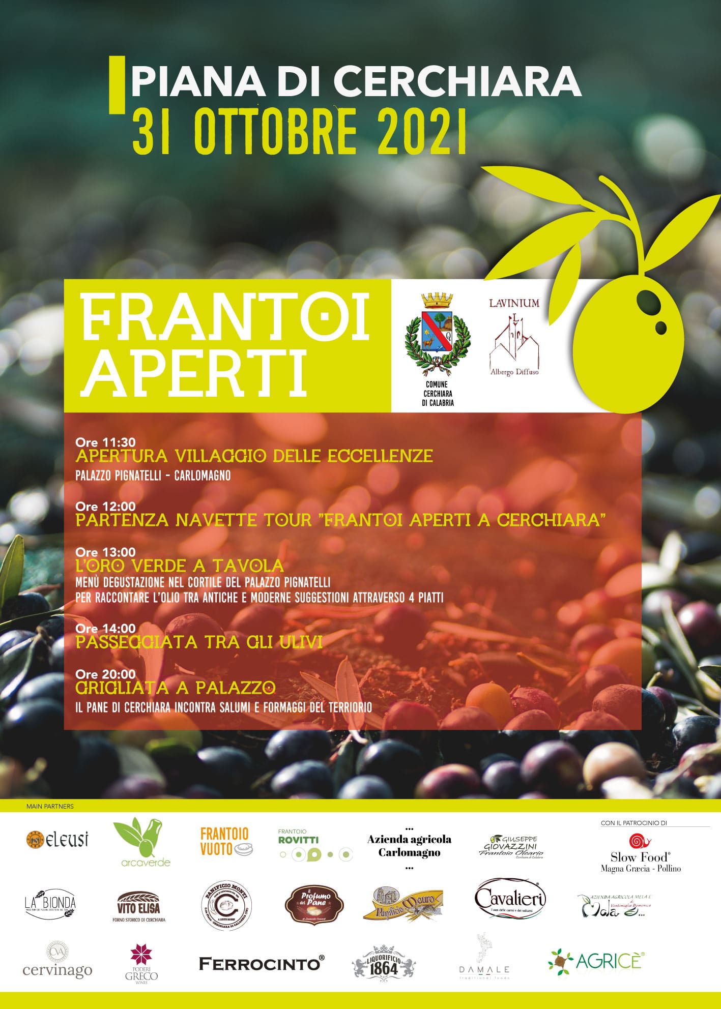 Vivere l’attività dei frantoi, nel pieno della lavorazione, passeggiare tra gli ulivi, degustare l’olio come condimento di quattro piatti per esaltare l’oro verde della Piana di Cerchiara tra antiche e moderne suggestioni.