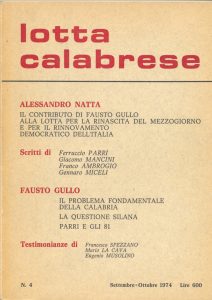 Nella Festa de L’unità, che si svolge a Cosenza dal 12 al 15 settembre, è anche previsto l’avvio della programmazione delle iniziative che il PD intende promuovere per la celebrazione del cinquantesimo anniversario della morte di Fausto Gullo. In particolare, si prevedono due eventi. Il primo evento prevede la ristampa del numero del volume di “Lotta calabrese”, il periodico di elaborazioni e approfondimenti del PCI calabrese negli anni settanta, contenente gli atti del convegno che si tenne, in occasione del trigesimo, al cinema Citrigno di Cosenza, con la partecipazione di Alessandro Natta. Direttore responsabile della rivista era Oloferne Carpino , redattore capo Enrico Ambrogio.