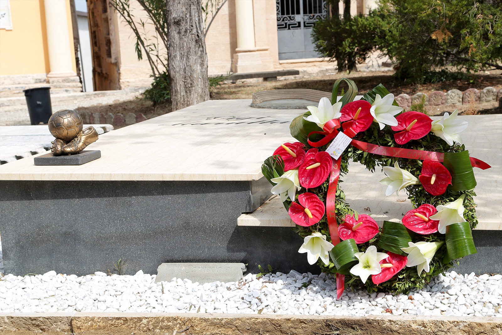 Ai piedi della lapide di Gigi Marulla è stata deposta una corona di fiori.